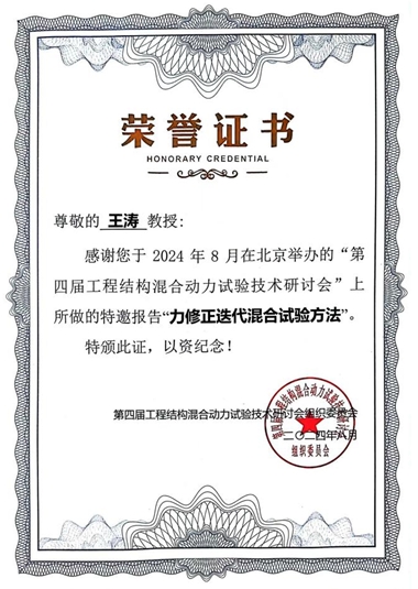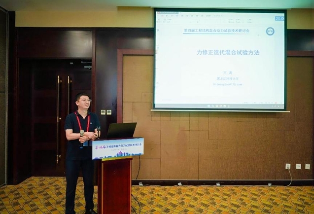 同时,taptap王涛教授在研讨会上做了特邀作学术报告“力修正迭代混合试验方法”,交流了课题组在迭代方法、多任务加载方法和自适应模型力修正方法等混合试验领域关键问题的最新研究进展。