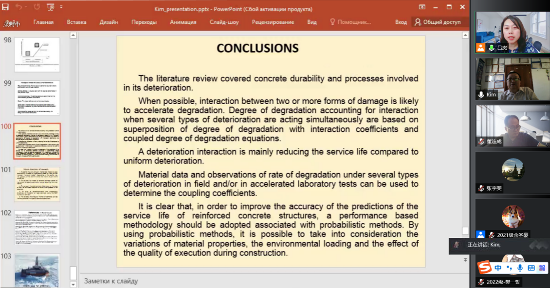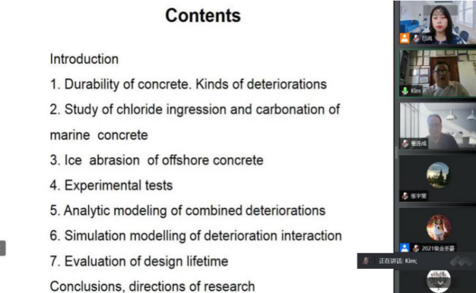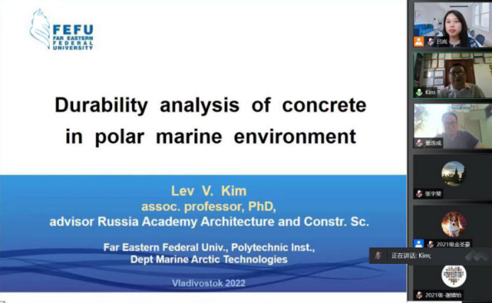 6月27日下午,taptap竞彩足球邀请了俄罗斯建筑与建筑科学研究院(RAACS)顾问,RAACS混凝土和钢筋混凝土破坏科学委员会委员,俄罗斯工程院顾问,国际生态、人类与自然保护科学研究院通讯委员,国际产学研用合作会议框架下中俄导师联合培养研究生项目俄方导师,俄罗斯远东联邦大学Kim Lev教授通过腾讯会议VOOV国际平台做了题为《极地海洋环境下混凝土耐久性分析》的学术报告,并与taptap师生进行了广泛热烈的学术交流。