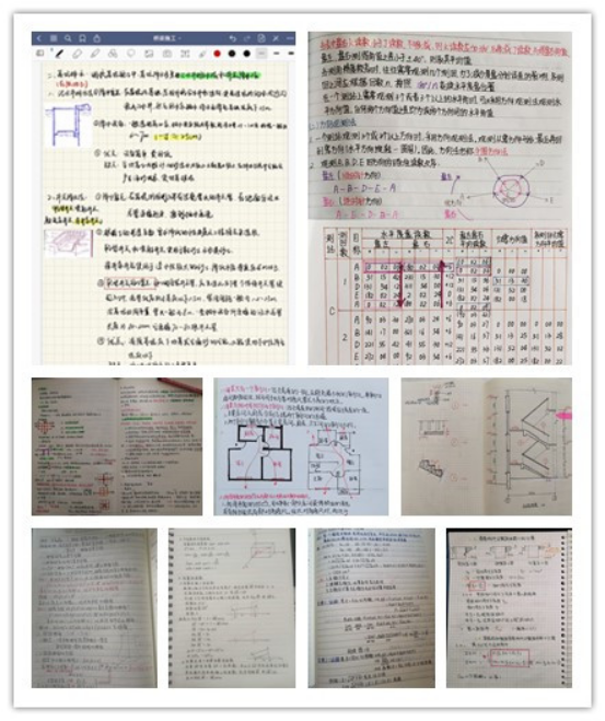 此次活动得到了全院青年学子的积极响应,打造出多年级、多专业共同“云竞技”的良好局面。本次活动评选分三轮进行,首先由班级为单位将本班比较优秀的课堂笔记进行推荐提交,再由负责本次活动的老师以及学生干部按照逻辑清晰、重点突出、字迹工整、形式创新四个方面的评选标准进行层层筛选。经过多角度、多方位的考核,最终评选出道桥17-3班董妍、程管18-1班高炅榕等10余名同学的优秀笔记,并于学院团委官方微信公众号进行集中展览。