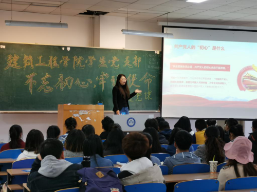 青春告白祖国,抒发报国之志。在主题教育期间,建工学院党委组织师生党员开展“学习强国”积分评比活动,坚持把学习教育贯穿主题教育全过程。学生党员历时近一个月,拍摄了《我和我的祖国》微视频,表达对党、对祖国的炽热情怀,用青春深情告白伟大祖国。学院党委还组织师生开展了义务清扫专业教室、美化院系橱窗等志愿服务活动和主题党日活动,充分展示了共产党员积极为师生服务的良好形象。学院党委书记和党支部书记先后为师生党员讲授专题党课,进一步激发了同学们坚持用把习近平新时代中国特色社会主义思想武装头脑、努力学好专业文化知识、不断提高自身综合素质、勇于担当民族复兴大任的内在动力,矢志为中华民族伟大复兴贡献自己的青春力量。