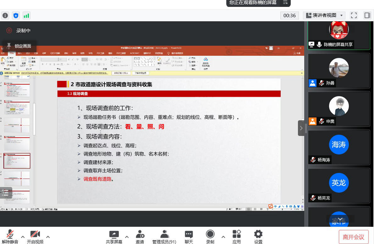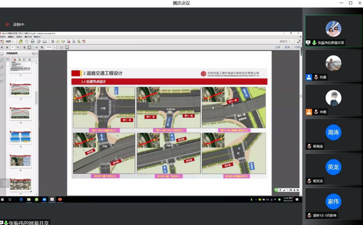 3月13日下午,国家优质工程奖项目主持者,中国市政工程中南设计研究总院有限公司交通规划设计院副总工程师陈楠,以及同创工程设计有限公司市政桥梁所所长、taptap点点足彩兼职硕士研究生导师张振伟,应邀分别做了题为“市政道路设计流程及要点”和“中小跨度桥梁常规设计流程及要点”的讲座。由于疫情原因,讲座活动在线上进行,讲座由道路桥梁与渡河工程教研室主任孙勇主持,道路桥梁与渡河工程专业全体毕业设计指导教师、道桥2018级全体同学,以及部分低年级同学共95人参与活动。