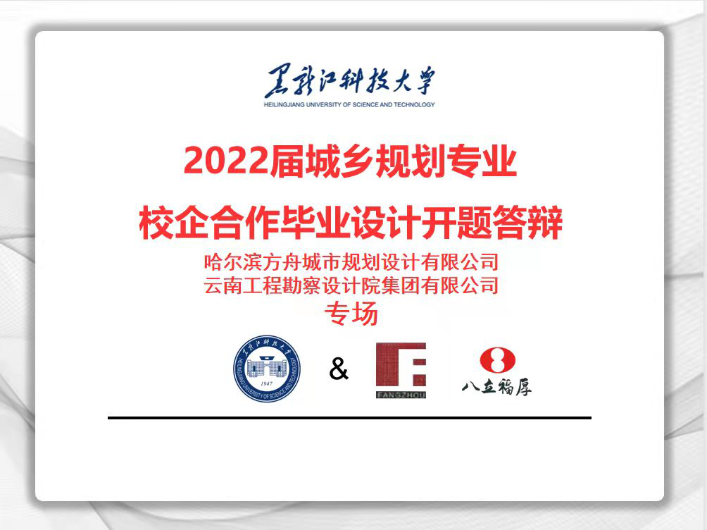 城乡规划专业延续2021年产教融合毕业设计的成功模式,2022年与哈尔滨工业大学城市规划设计研究院有限公司、黑龙江拓维城乡规划设计有限公司、哈尔滨方舟城市规划设计有限公司等7家企业深入合作,将毕业设计选题与设计院实际项目相结合,确保学生的毕业设计选题100%均为设计院真题,真题真做。通过毕业设计中的产教融合,学生在设计实践中不仅夯实了理论知识,更是锻炼了沟通协调能力和解决实际问题的能力,在真题真做的工程实践中获得了成就感、价值感和专业认同感,成为城乡规划专业实现全程育人、全方位育人的重要组成部分。