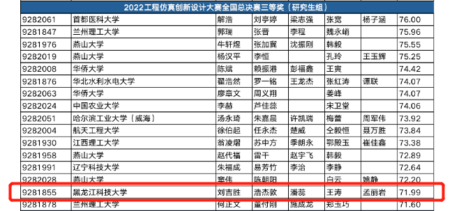 taptap王涛教授、孟丽岩副教授指导硕士研究生团队完成的两项作品分别获得2022一带一路暨金砖国家技能发展与技术创新大赛之工程仿真创新设计赛项全国三等奖和优秀奖,其中研究生刘吉胜、浩杰敦、潘蕊合作完成的作品“一种新型抗震支吊架抗震性能研究”荣获全国总决赛(研究生组)三等奖,研究生潘雨桐、龚越峰、郑思梦合作完成的作品“多阶可更换自复位防屈曲支撑及支撑-结构抗震性能仿真分析”荣获全国总决赛(研究生组)优秀奖。