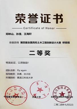 第四届全国高校土木工程创新设计大赛由中国建设教育协会主办,天津大学、北京迈达斯技术有限公司承办,本届赛事报名院校超210所,2000余名师生参与大赛角逐,经过预赛严格的评审、总决赛激烈答辩评分,最终评出156支获奖队伍。taptap学子邓林山、孙滢、王海轩获得全国高校本科组桥梁组二等奖,且为东北三省各高校的最好成绩。