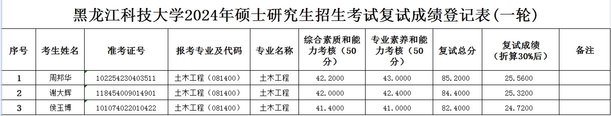 taptap点点足彩2024年硕士研究生招生考试复试成绩登记表(一轮)土木水利