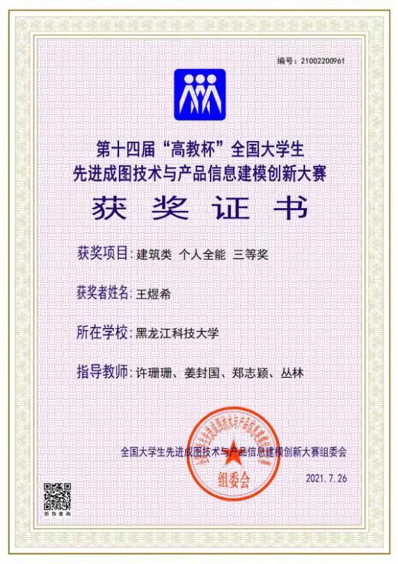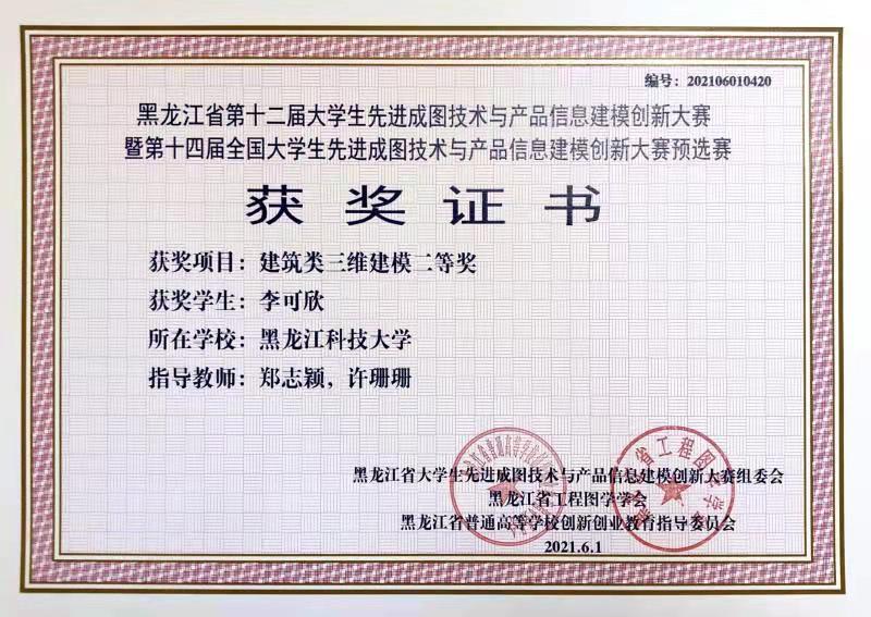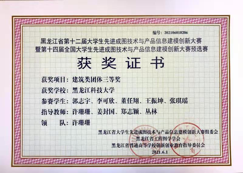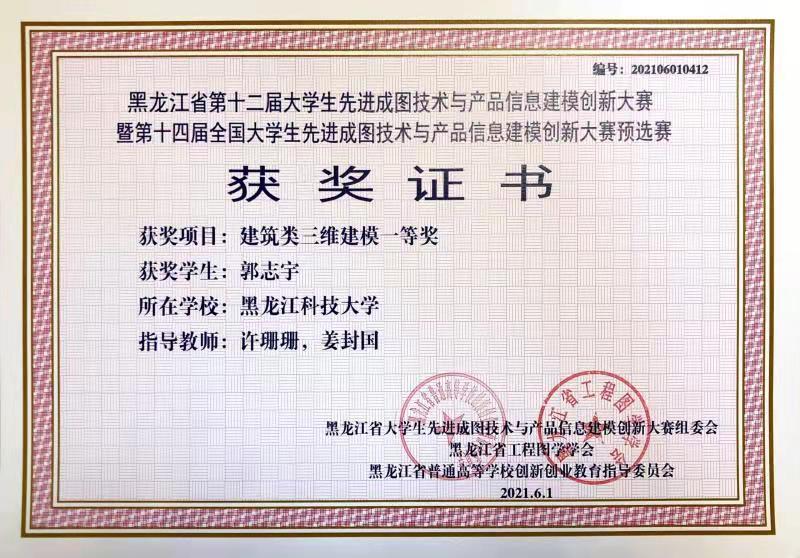 在此前进行的省赛中,获得了个人建筑类三维建模一等奖1项、二等奖1项、团体建筑类三维建模三等奖1项,并成功杀出重围,入围国赛。