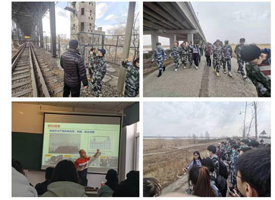 在为期5天的认识实习过程中,教师带领学生踏查了呼兰河大桥、太阳桥、松浦大桥、滨州铁路桥、呼口大桥、文昌立交桥、阳明滩大桥等哈尔滨市区内典型桥梁工程典型案例近20处;哈大高速公路、城区二环路、绕城高速公路等道路工程典型案例近10处。使学生对于桥梁结构基本组成和构造形式、基本概念和术语、桥面系的构造及其作用、桥梁设计的基本原则、桥梁的各种施工方法及优缺点,以及对道路工程的基本组成和分类、道路的构造及其作用、施工工艺等知识点的认识有了显著提升。实习还安排孙大珩老师开展了题为《道路新近发展成果》的讲座,为同学们拓展了在功能性路面材料研发等前沿领域的视野,激发了学生们的求知欲。