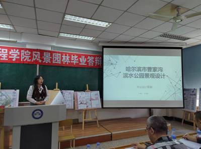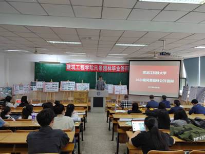 本届学生毕业设计选题丰富,本届毕业设计选题100%真题设计,选题多样,与公园城市、乡村振兴、城市双修等热点主题紧密结合,成果内容具有一定创新性,涵盖风景园林热点问题,均采用真题真做模式,徐飞鸿和董雪两位同学分别以“哈尔滨市曹家沟滨水公园景观设计”和“齐齐哈尔市仙鹤宾馆片区景观规划设计”为选题进行了公开答辩,与会专家进行了精彩点评。通过公开答辩展现了taptap风景园林专业一如既往的“产学研用”、“毕业设计+实习+就业”一体化实践教学成果以及专业师德师风建设成果,为专业发展积累了丰富的实践教学经验。全体专业教师和风景园林、城乡规划和建筑学部分同学参加了本次公开答辩,公开答辩后进行了小组答辩,经过一天的工作,顺利完成了毕业设计答辩工作。