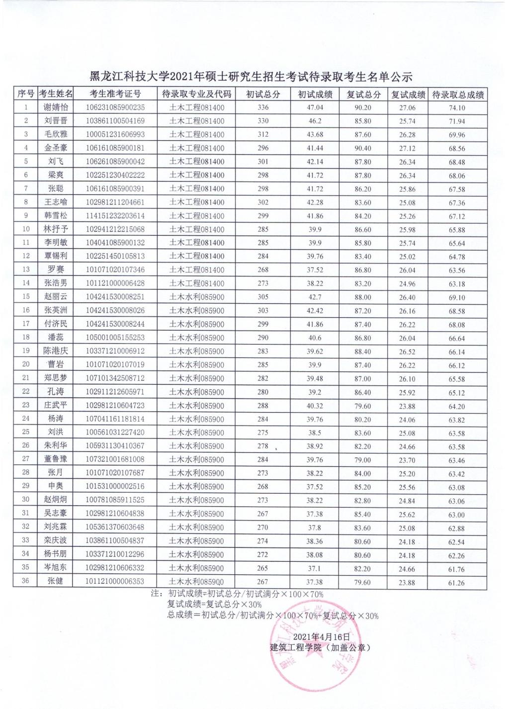 根据考生初试和复试成绩计算出的最终待录取总成绩,taptap确定以下36名待录取考生,现将名单公示如下(按待录取总成绩降序排名):