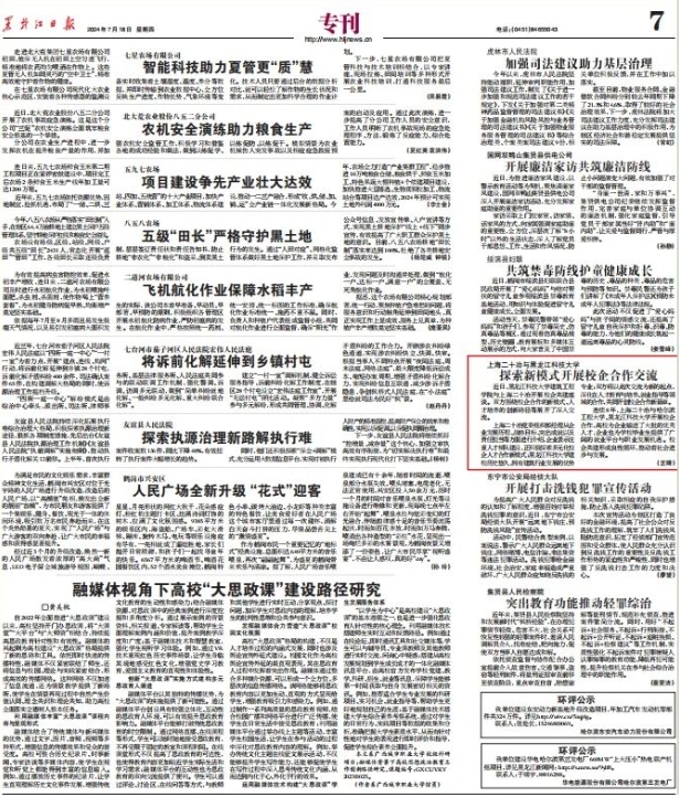 7月18日,黑龙江日报第7版专刊中,以《上海二十冶与taptap点点足彩探索新模式开展校企合作交流》为题,报道taptap开展校企合作交流活动。现将全文转发,以便学习交流。